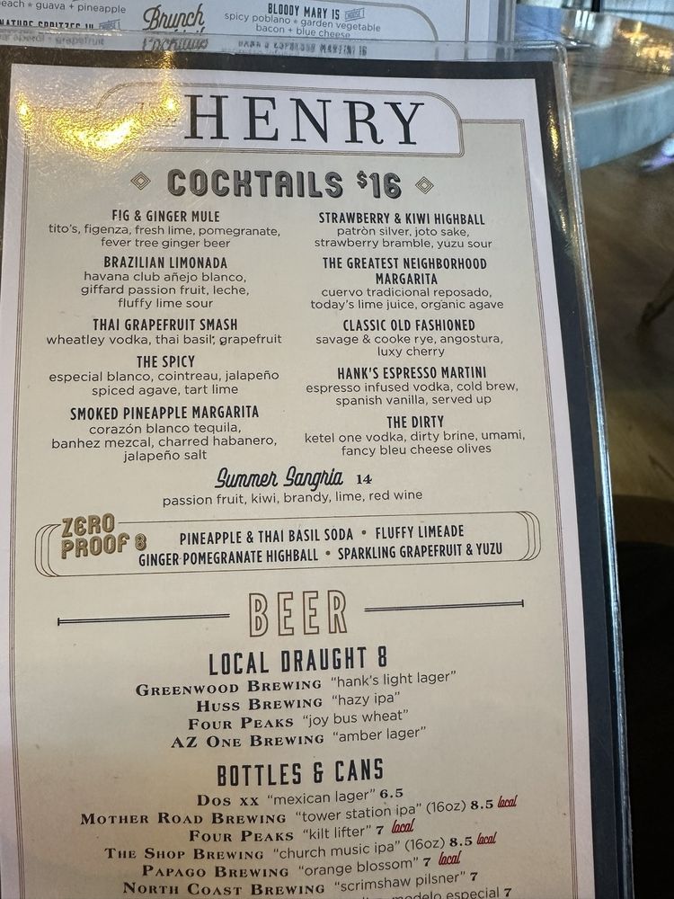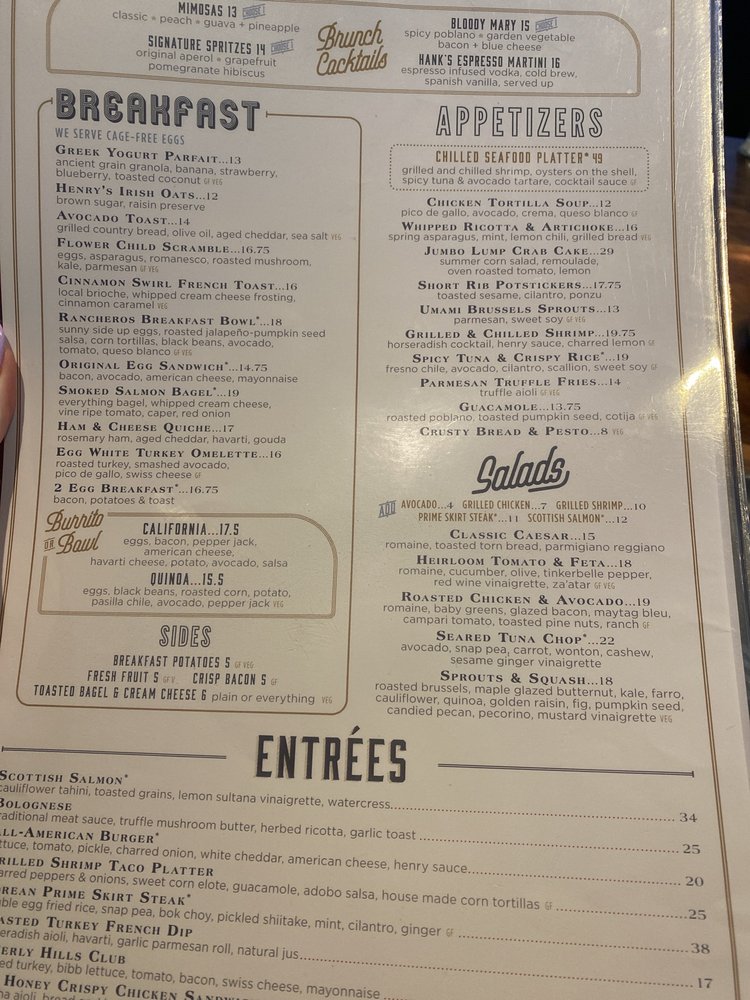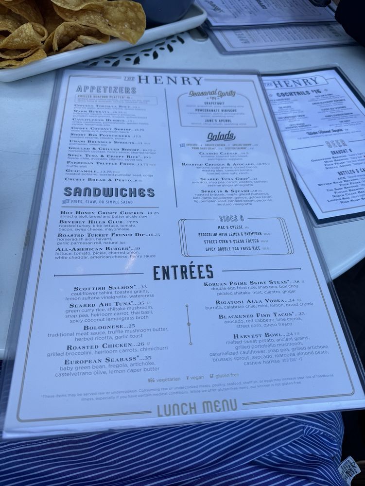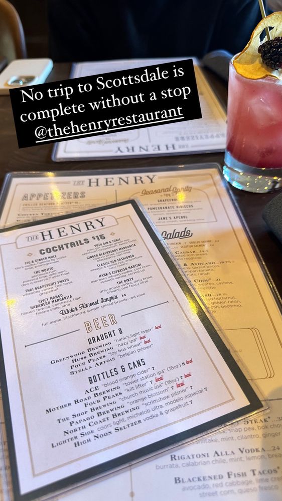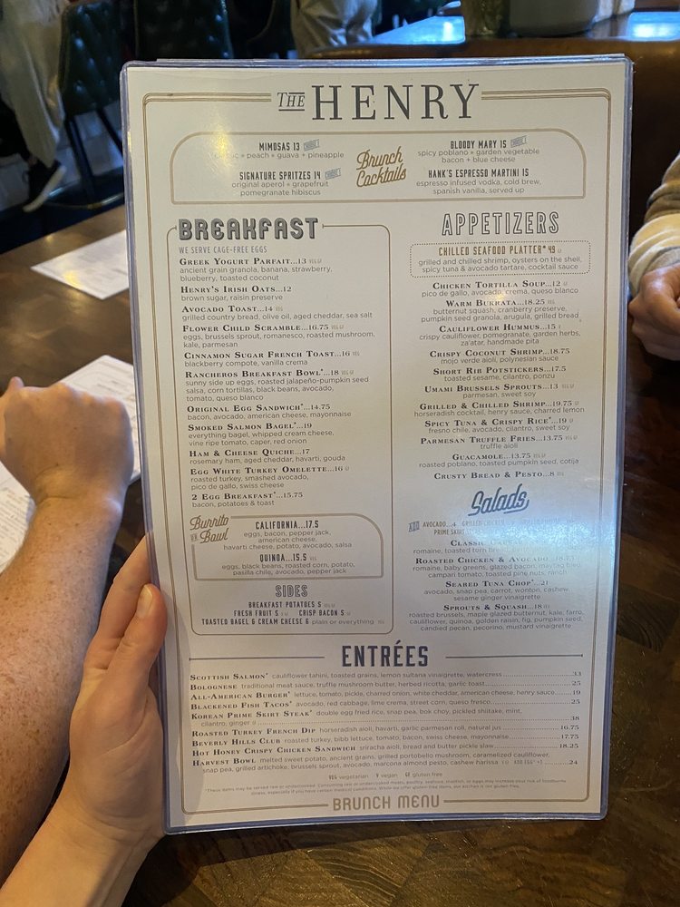 Introducing The Henry, a trendy and elegant restaurant in Phoenix, AZ, offering a diverse menu from breakfast to dinner. With a focus on New American cuisine, The Henry provides a wide range of options, including vegan choices and a full bar with happy hour specials. The appetizers feature unique dishes like Chilled Seafood Platter and Whipped Ricotta & Artichoke, while the entrées showcase favorites like Scottish Salmon and All-American Burger. Customers rave about the relaxing atmosphere, exceptional service, and delicious food, making it a go-to spot for various occasions. The Henry stands out for its stylish decor, welcoming vibe, and high-quality dishes, making it a must-visit destination for food enthusiasts and casual diners alike.